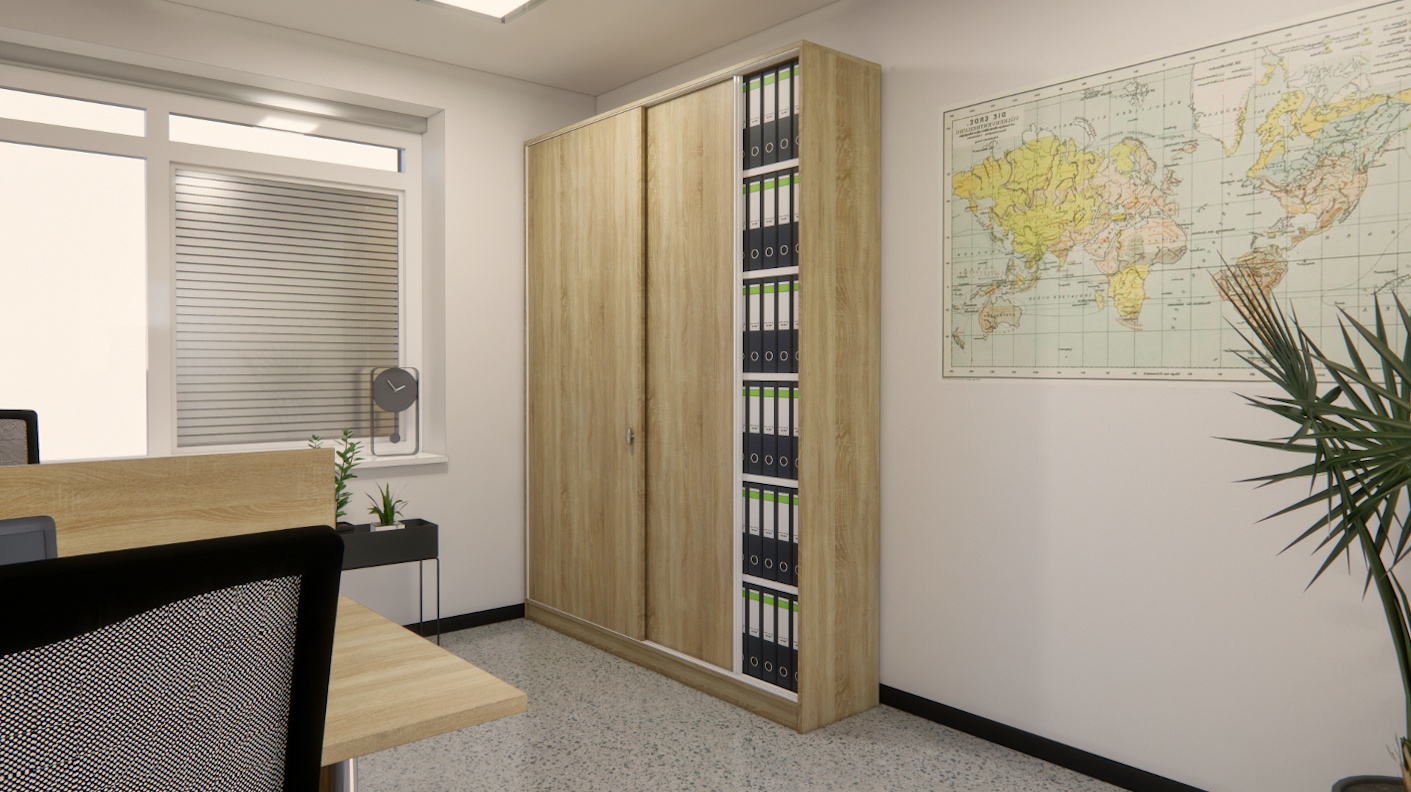 Úložný priestor - na ploche 1,6x0,4m uložíte v našej veľkokapacitnej kancelárskej skrini až 144 šanónov, to je 40% viac ako pri bežných kancelárskych skriniach. Alebo skombinujte šanóny so šatníkom.